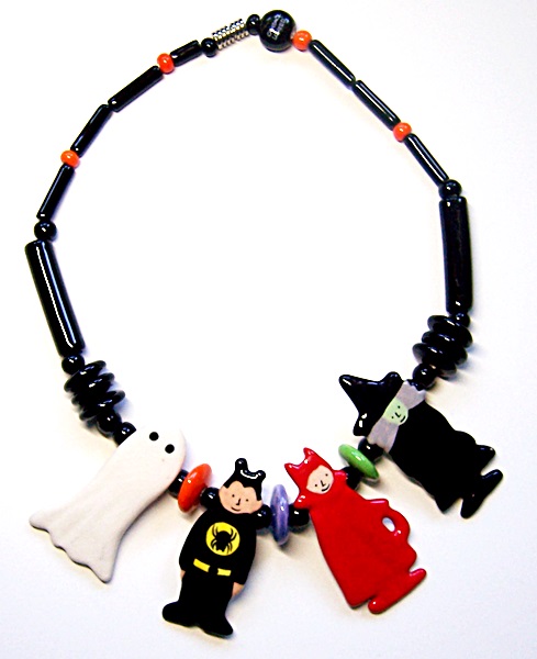 Ruby Z / Candace Loheed Ceramic Halloween Trick-or-Treaters Necklace