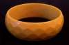 Wonderful colors in this vintage bakelite bangle -- a marbled sherbet peach and pale orange that some refer to as "tequila sunrise." 1/4" thick walls are very lightly domed. Measures just a tad over 3/4" wide, with standard 2 1/2 diameter opening (measuring across top of bangle). Condition is excellent. - $90