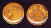 Unusual large disc earrings have an orange/applejuice swirl appearance. They do test positive for bakelite (Simichrome and smell). 1 1/2" diameter. Very mild wear to the metal clips, but otherwise excellent condition. - $25