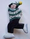 This lady skater is bundled up for the cold weather; ceramic pin made by Ruby Z stands approximately 2 7/8". Excellent condition. Maker's name is stamped on back. - $50
